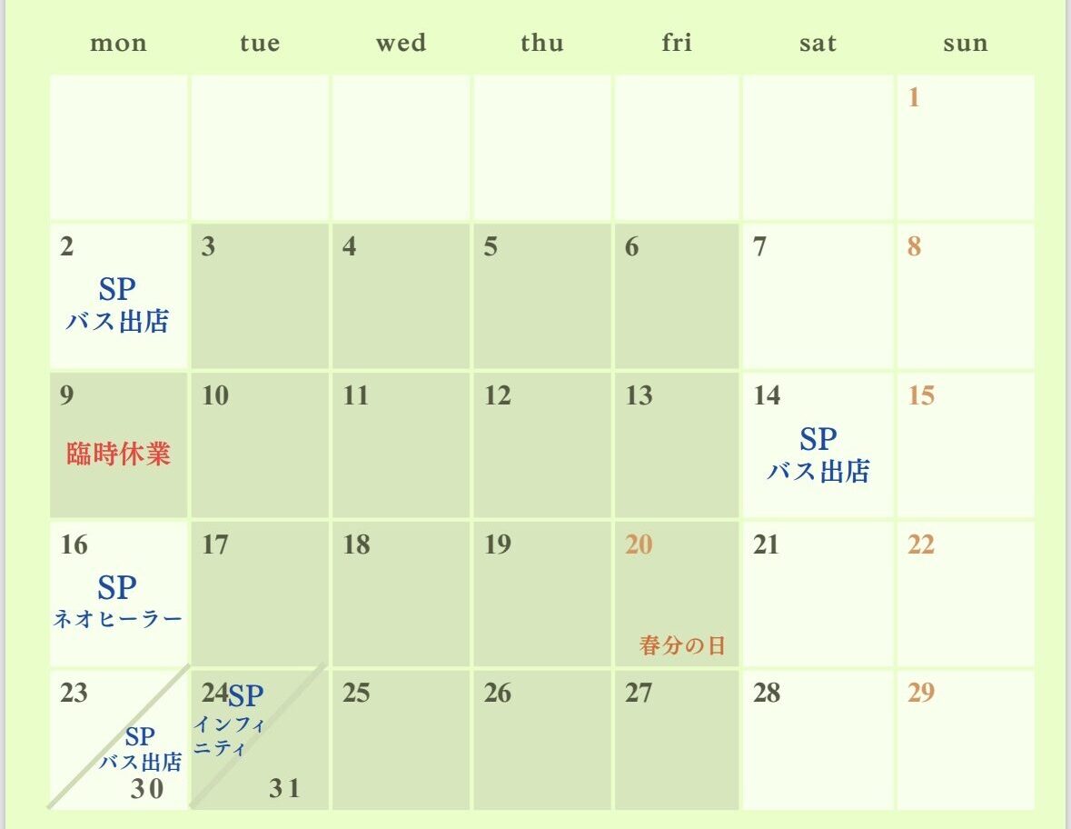 3月のCafe営業カレンダーです。詳しくは「こちら」をクリックしてください。