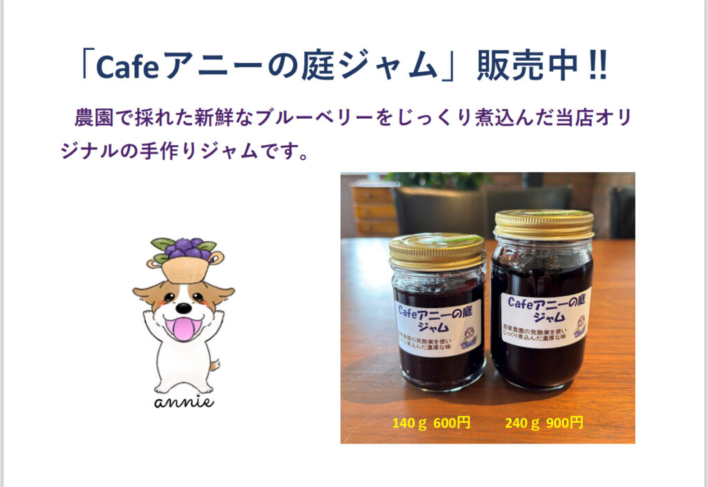 「Cafeアニーの庭ジャム」販売中! 詳しくはこちらをクリックしてください。
