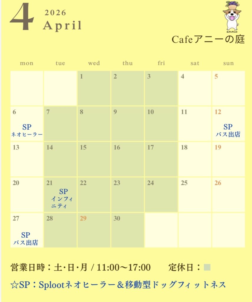 4月のCafe営業カレンダーです。詳しくは「こちら」をクリックしてください。