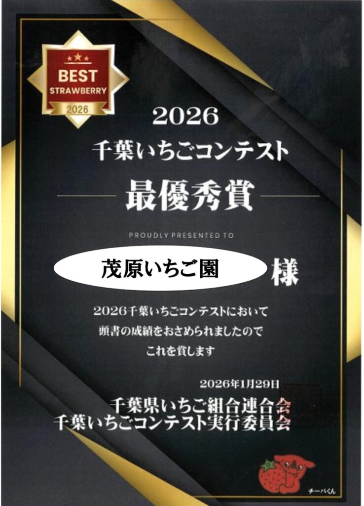 Cafeアニーの庭の「いちご」の生産者(茂原いちご園)が、千葉いちごコンテストでNO.1の最優秀賞に選ばれました。